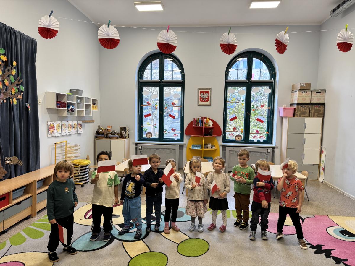 W dniu 7.11.2025 r. dzieci z całego naszego przedszkola uczciły Narodowe Święto Niepodległości śpiewając wspólnie hymn polski Mazurek Dąbrowskiego.